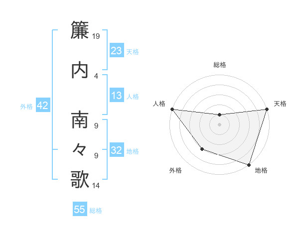 簾内 南々歌さんを姓名の画数から五運を鑑定