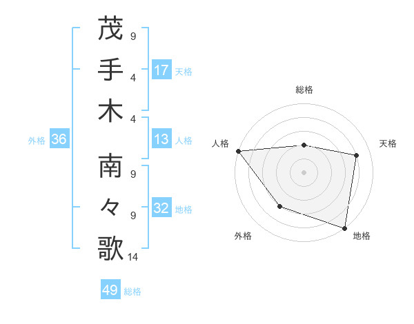 茂手木 南々歌さんを姓名の画数から五運を鑑定