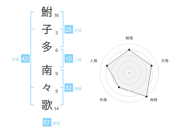 鮒子多 南々歌さんを姓名の画数から五運を鑑定