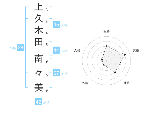 上久木田 南々美さんを姓名の画数から五運を鑑定