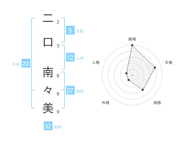 二口 南々美さんの総格は32画の5点!