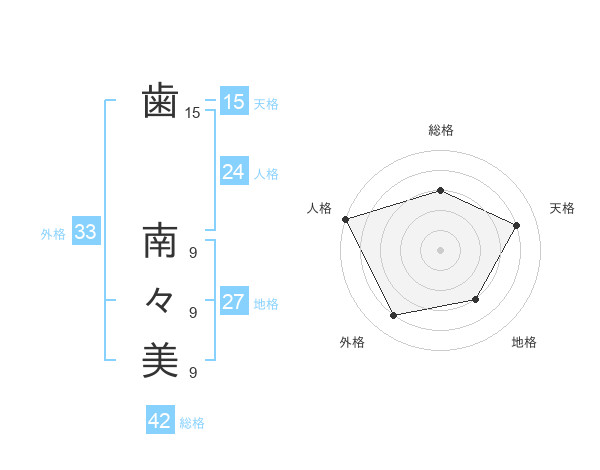 歯 南々美さんの天格は15画の4点!
