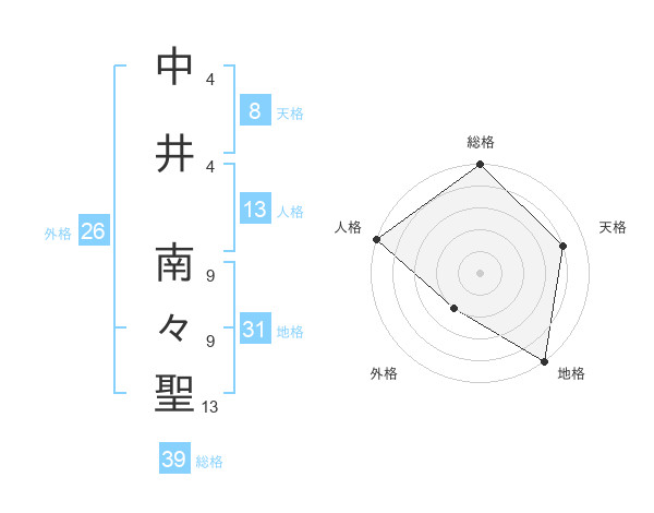 中井 南々聖さんを姓名の画数から五運を鑑定
