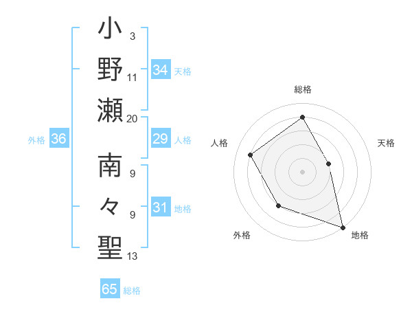小野瀬 南々聖さんを姓名の画数から五運を鑑定
