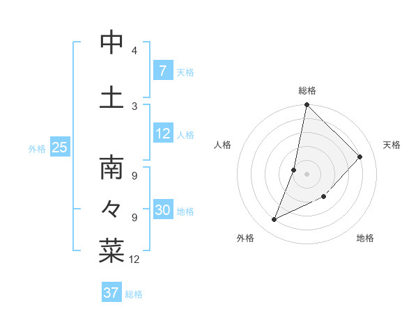 中土 南々菜さんを姓名の画数から五運を鑑定