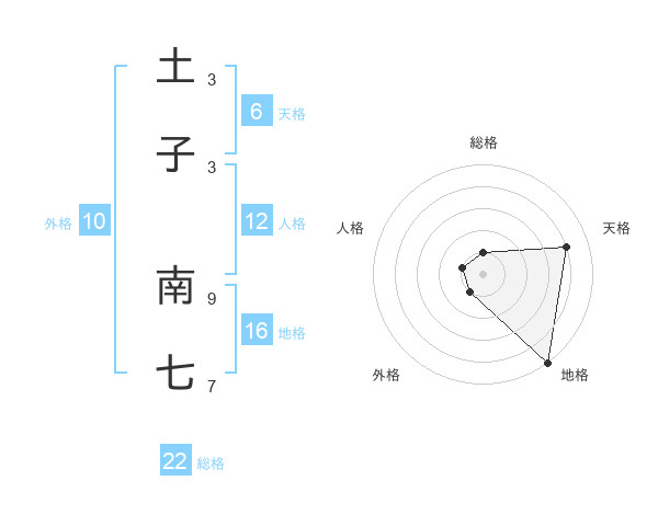 土子 南七さんの総格は22画の1点!