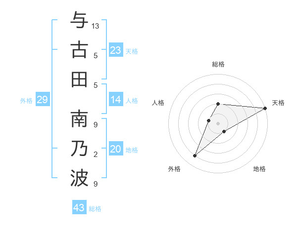 与古田 南乃波さんを姓名の画数から五運を鑑定