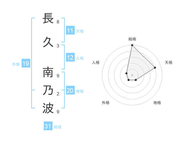 長久 南乃波さんを姓名の画数から五運を鑑定