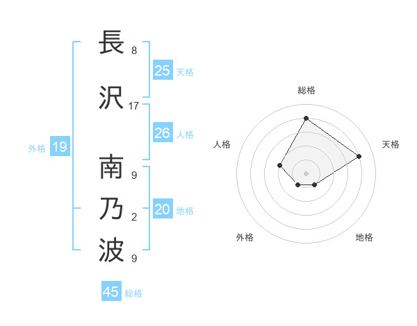長沢 南乃波さんを姓名の画数から五運を鑑定