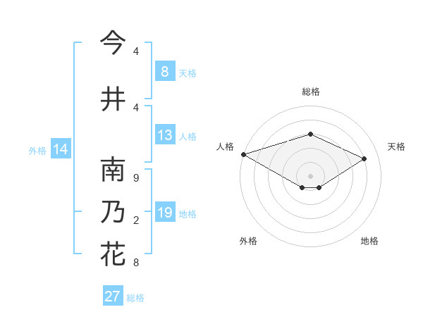 今井 南乃花さんを姓名の画数から五運を鑑定