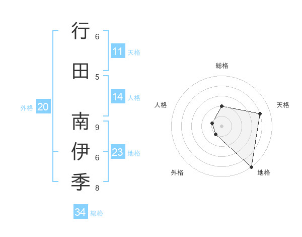 行田 南伊季さんを姓名の画数から五運を鑑定