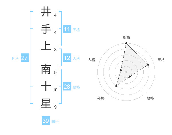 井手上 南十星さんを姓名の画数から五運を鑑定