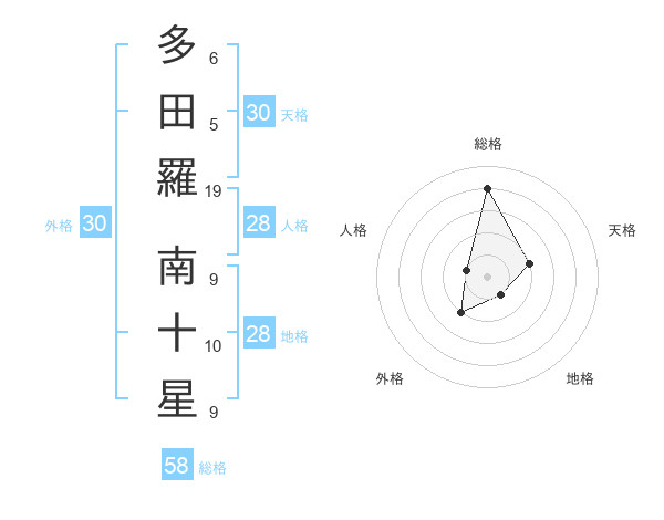 多田羅 南十星さんを姓名の画数から五運を鑑定