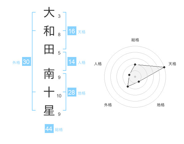 大和田 南十星さんを姓名の画数から五運を鑑定
