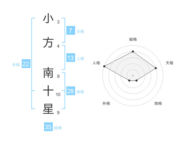 小方 南十星さんの総格は35画の4点