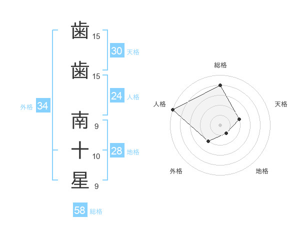 歯歯 南十星さんの外格は34画の2点!