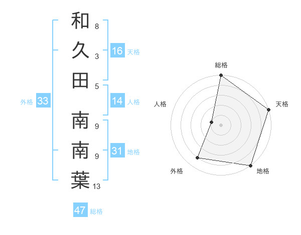 和久田 南南葉さんを姓名の画数から五運を鑑定