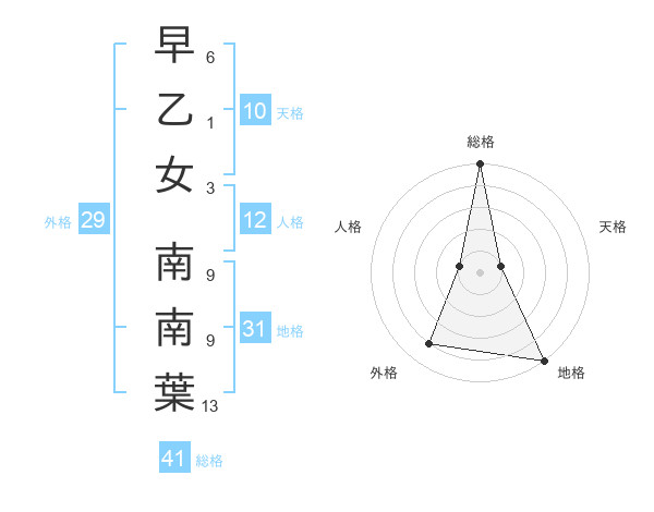 早乙女 南南葉さんを姓名の画数から五運を鑑定