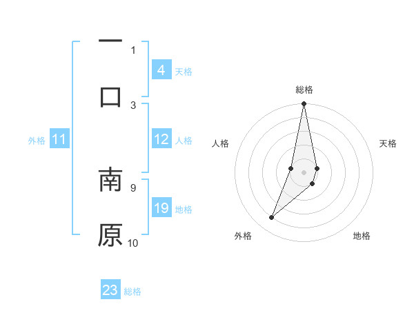 一口 南原さんの総格は23画の5点!