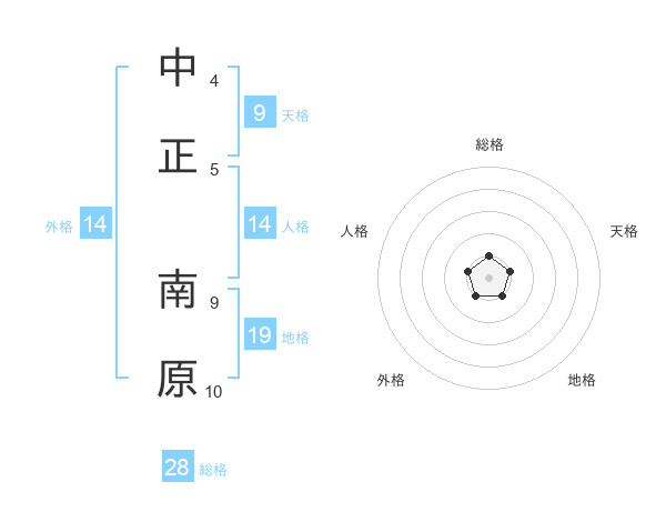 中正 南原さんの総格は28画の1点!
