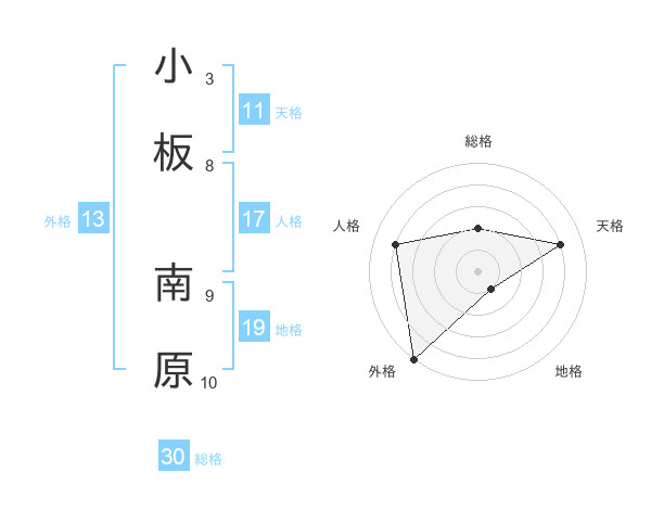 小板 南原さんの外格は13画の5点!