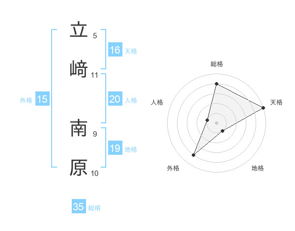 立﨑 南原さんを姓名の画数から五運を鑑定