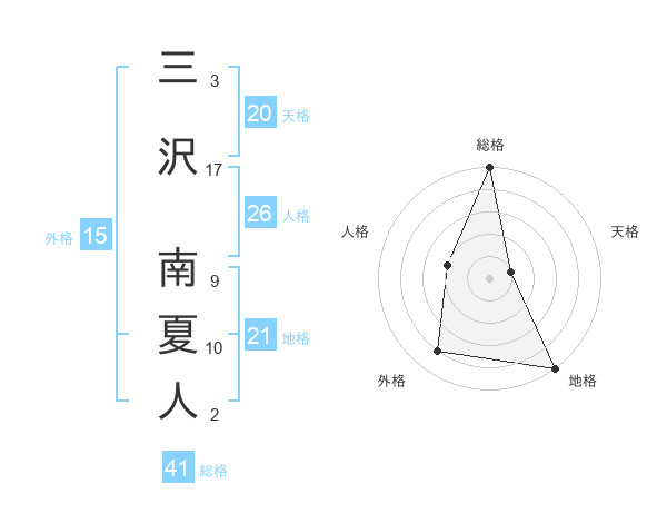 三沢 南夏人さんの外格は15画の4点!