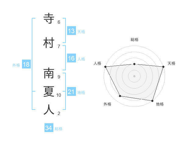寺村 南夏人さんの天格は13画の5点