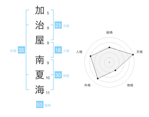 加治屋 南夏海さんの天格は23画の5点!