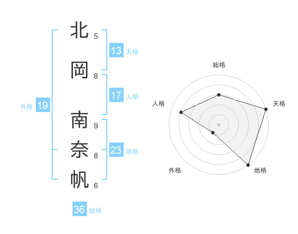 北岡 南奈帆さんの天格は13画の5点!