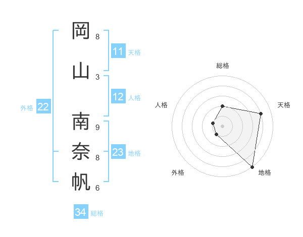 岡山 南奈帆さんの総格は34画の2点!