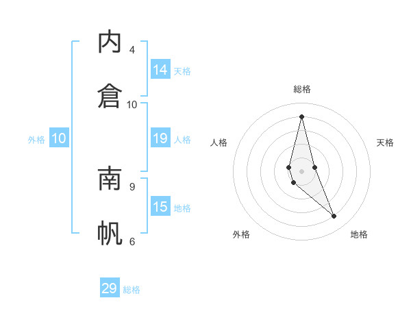内倉 南帆さんを姓名の画数から五運を鑑定