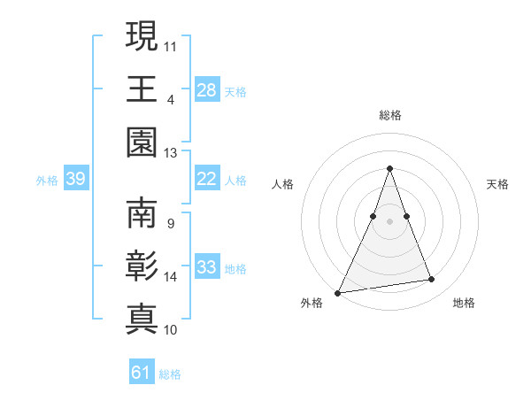 現王園 南彰真さんを姓名の画数から五運を鑑定