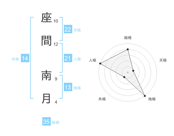 座間 南月さんの総格は35画の4点!