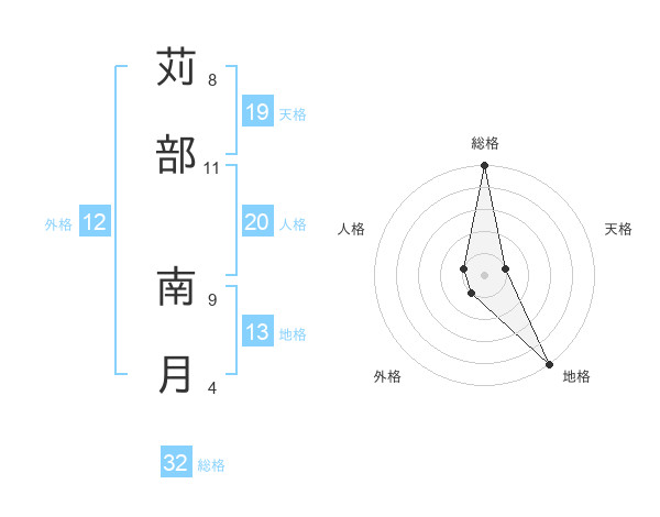 苅部 南月さんの総格は32画の5点!