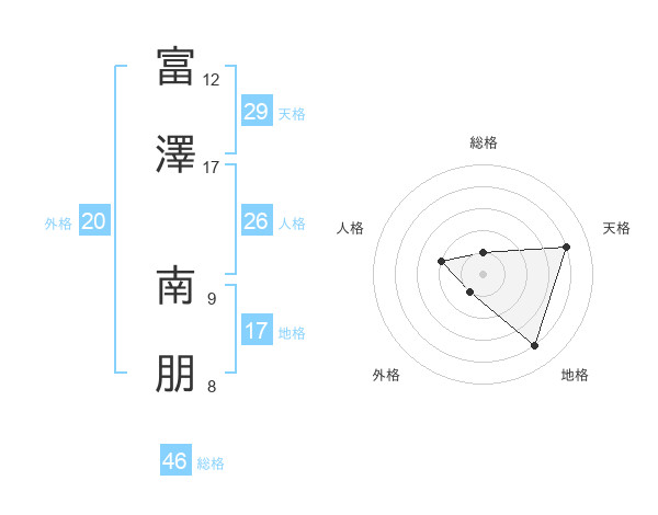 富澤 南朋さんの総格は46画の1点!