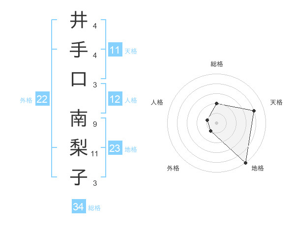 井手口 南梨子さんを姓名の画数から五運を鑑定