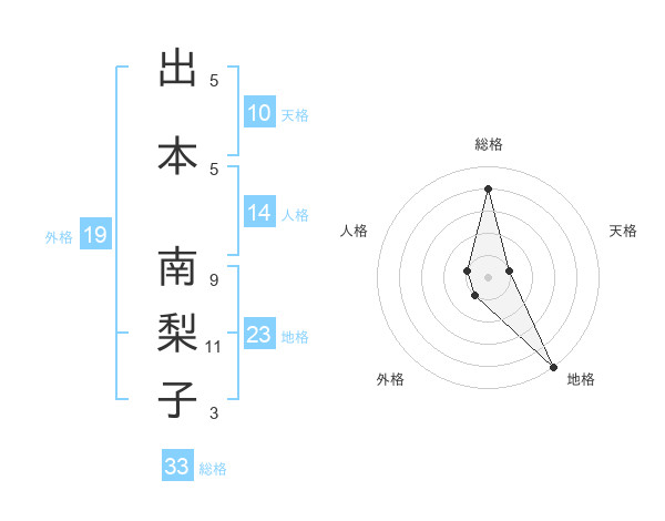 出本 南梨子さんを姓名の画数から五運を鑑定