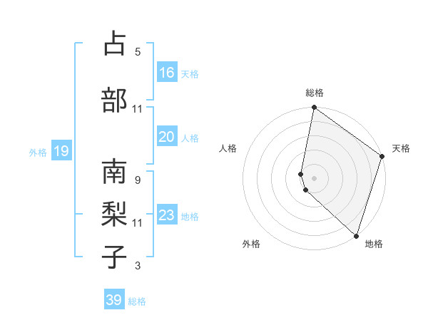 占部 南梨子さんを姓名の画数から五運を鑑定