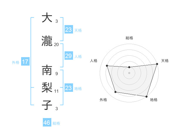 大瀧 南梨子さんを姓名の画数から五運を鑑定