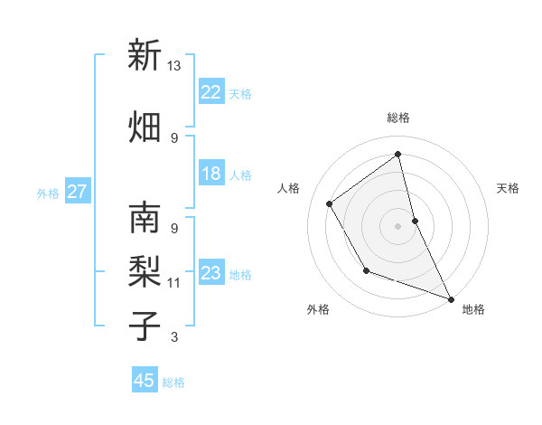 新畑 南梨子さんを姓名の画数から五運を鑑定