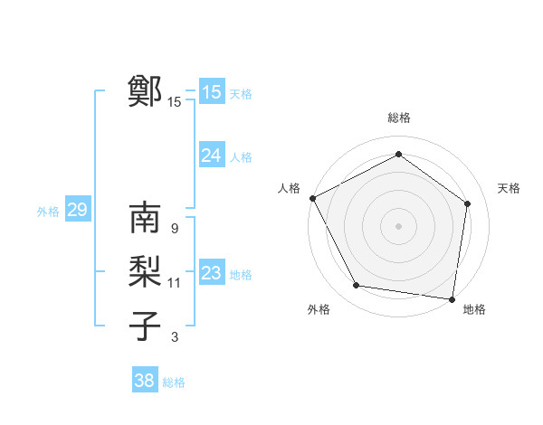 鄭 南梨子さんを姓名の画数から五運を鑑定