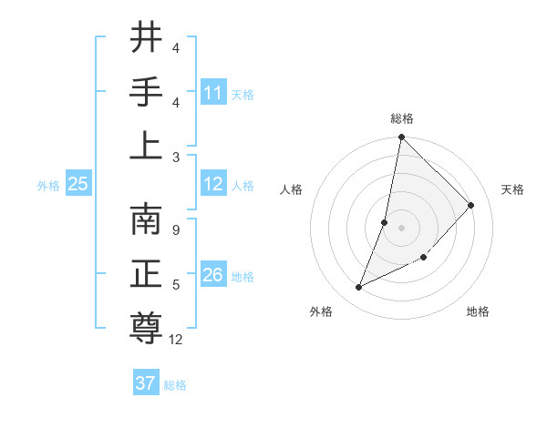 井手上 南正尊さんを姓名の画数から五運を鑑定