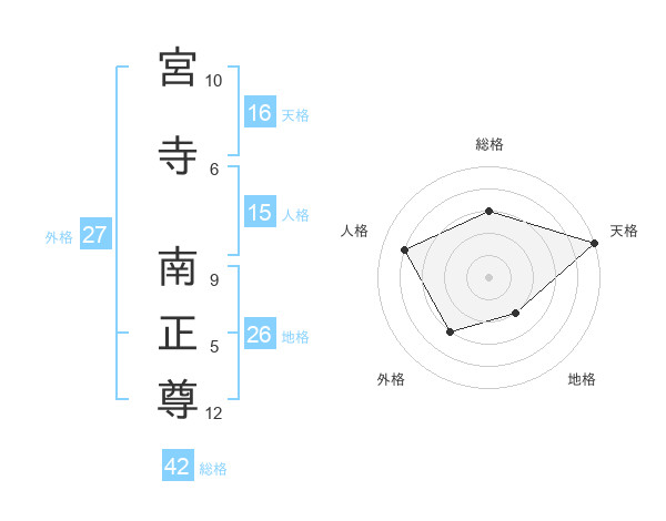 宮寺 南正尊さんを姓名の画数から五運を鑑定