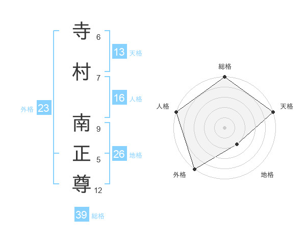寺村 南正尊さんの総格は39画の5点!