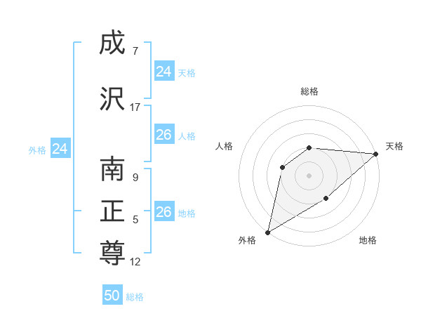 成沢 南正尊さんを姓名の画数から五運を鑑定