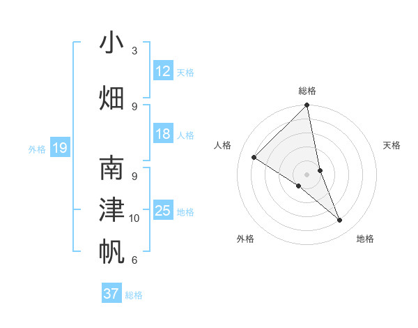 小畑 南津帆さんの総格は37画の5点!
