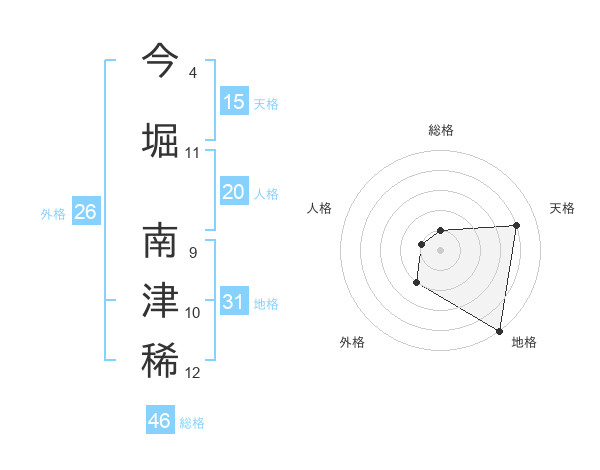 今堀 南津稀さんを姓名の画数から五運を鑑定