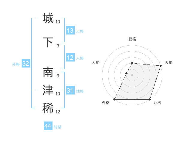 城下 南津稀さんを姓名の画数から五運を鑑定