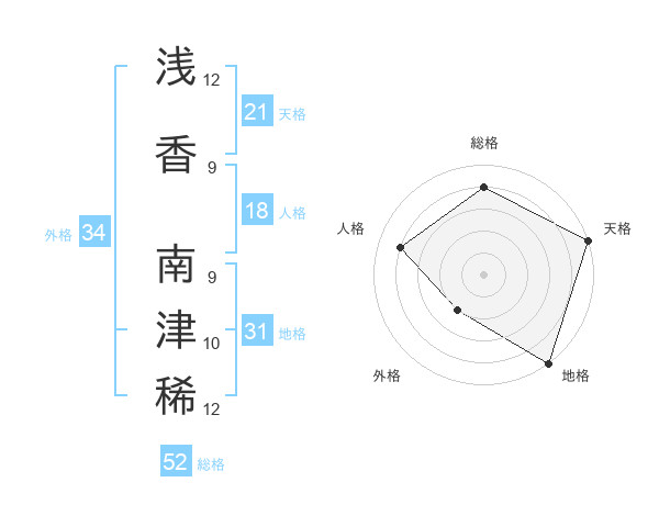 浅香 南津稀さんを姓名の画数から五運を鑑定